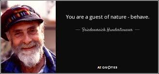 Hundertwasser was an Austrian / New Zealand artist, architect, visionary and ecowarrior who had a lifelong commitment to environmental protection. He is a symbolic figure for a non-conformist way of life, a forerunner of the environmental movement and an ambassador for a self-determined alternative existence. "If man walks in nature's midst, then he is nature's guest and must learn to behave as a well-brought-up guest." Hundertwasser propagated a type of architecture in harmony with nature is his ecological commitment. He campaigned for the preservation of the natural habitat and demanded a life in accordance with the laws of nature. Years before it was commonplace, he wrote numerous manifestos, lectured and designed posters in favor of nature protection, against nuclear power, to save the oceans and the whales and to protect the rainforest. Rather than sell much of his work, he often donated them for posters to increase awareness about environmental issues. Although Hundertwasser first achieved notoriety for his boldly-colored paintings, he is more widely known for his individual architectural designs. These designs use irregular forms, and incorporate natural features of the landscape like a roof covered with earth and grass, and large trees growing from inside the rooms, with limbs extending from windows. He took no payment for the design of Hundertwasserhaus, declaring that it was worth the investment to "prevent something ugly from going up in its place". For Hundertwasser, human misery was a result of the rational, sterile, monotonous architecture. He mobilized the power of his art in order to spread his message for a life in harmony with nature and the individual creativity. His work utilized bright colors, organic forms, a reconciliation of humans with nature, and a strong individualism, rejecting straight lines. He was fascinated by spirals, and called straight lines "godless and immoral" and "something cowardly drawn with a rule, without thought or feeling”.