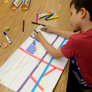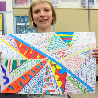 Last week we refreshed a lot of our design element and color skills. Taking cues from the cave painting symbols and other textures, the children created interesting pieces. I asked that they keep in mind balance, line , design and use a variety of techniques. Most of them are so accomplished at taking a cue and without hesitation, running with it. I always love seeing the results. As the week progressed, the works became more refined and the children who were in Friday's class, took the same elements and applied them to sculptures.