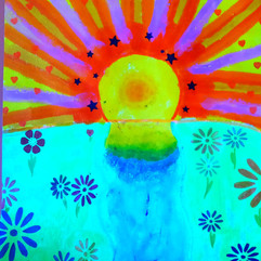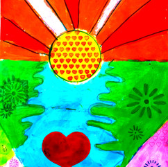 This week was all about positivity and color. I chose the work of Pop Artist Peter Max to celebrate Valentine's Day. We used Kwik Sticks and markers to create these vibrate pieces inspired by Max's Hearts, and his Sunrise Series. They incorporated both painting and graphic design techniques.