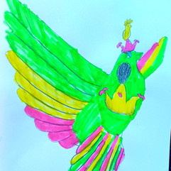 them into prints. In addition, during free draw time, several students did their own creative contemporary versions inspired by birds in flight.