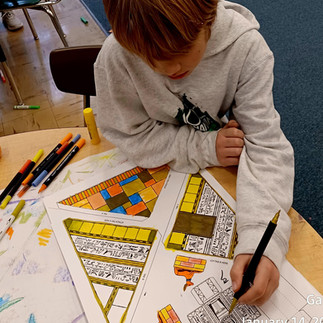 It is a challenge to condense an Ancient culture into one art lesson. We looked at the design of the Pyramids, which are engineering wonders. Who isn't fascinated by secret chambers and buried treasure? While looking at images inside the tomb, we discussed the animals and birds featured as well as depictions of daily life. It is a fine line between cultural appreciation and cultural appropriation. I am always aware, and for that reason, I try to avoid sacred or religious discussions and using those symbols in art.