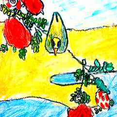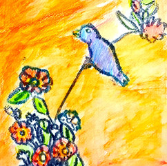 Spring and cherry blossoms, using watercolor pencils and crayons.
