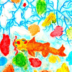 of one of Escher's lesser-known landscape prints. It is a multi-layered scene of a Koi fish swimming in a pond with recently fallen leaves floating on the surface and reflections of barren trees on the water's edge. I think that you will agree that they captured the complexity and essence beautifully.