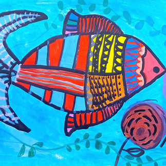 Fall lessons began with colorful mixed media paintings inspired by Madhubani art. In addition to enjoying our spacious art room, we welcomed several new students. While we miss the 5th graders that graduated to middle school, they fit right in with the ongoing students and have added a spark to the class.