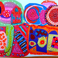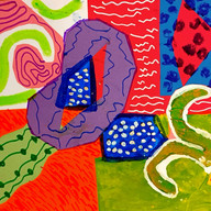 In the Fall lessons, we have been studying patterns and symbols throughout nature and art history. We recently looked at the work of Miro and Calder, two artists that combined art and science. Miro was fascinated with Freud’s teachings about the subconscious mind and dreams which resulted in his Surrealist style of art, and Alexander Calder was fascinated by physics and engineering which he interpreted in his sculpture. We took a step further and looked at patterns that repeat in art and nature, but on a microscopic level. The development of microphotography gave access to that invisible and mysterious world. Many of the images found in Aboriginal art and work created by Contemporary Abstract artists intuitively reflect the same patterns and shapes that are on a cellular level and are universal throughout nature. We looked at a variety of patterns in nature and microscopic images, which were the inspiration for last week’s creative projects. It was both entertaining and a challenge for the class to try to guess their origin. The beauty and designs did not give away such diverse sources as a piece of thread, drops of water, bugs, and plants. The favorite was what looked like a lush forest of broccoli and turned out to be the hairs on the toes of a gecko! After the gasps and laughter subsided, the class created colorful mixed media abstract collages using colored paper, markers, and paint. I love their enthusiasm when they are free to “go for it “and use their intuition and individuality to create.