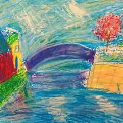 Thaulow's masterful use of light and shadow and reflections on water inspired last week's mixed media oil pastel landscape lesson.