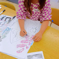 We welcomed several new students to class this week as we celebrated Spring. For this lesson the class used a combination of markers, brush pens and oil pastels to create their Spring inspired mixed media drawings.
