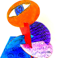 We often talk about inspiration and where it comes from, nature, other artists, or cultures. This past week we looked at the art of Miro and Calder and their relation to each other and the previous lesson of ancient cultures and symbols. Both artists used primary colors and geometric shapes, lines and some of the universal symbols that are found in Petroglyphs, Cave art, Aboriginal art and Hieroglyphics. The class was inspired by their work to create their own interpretations of mixed media drawings and sculptures, using the same colors, symbols and geometric shapes Miro used in his works.